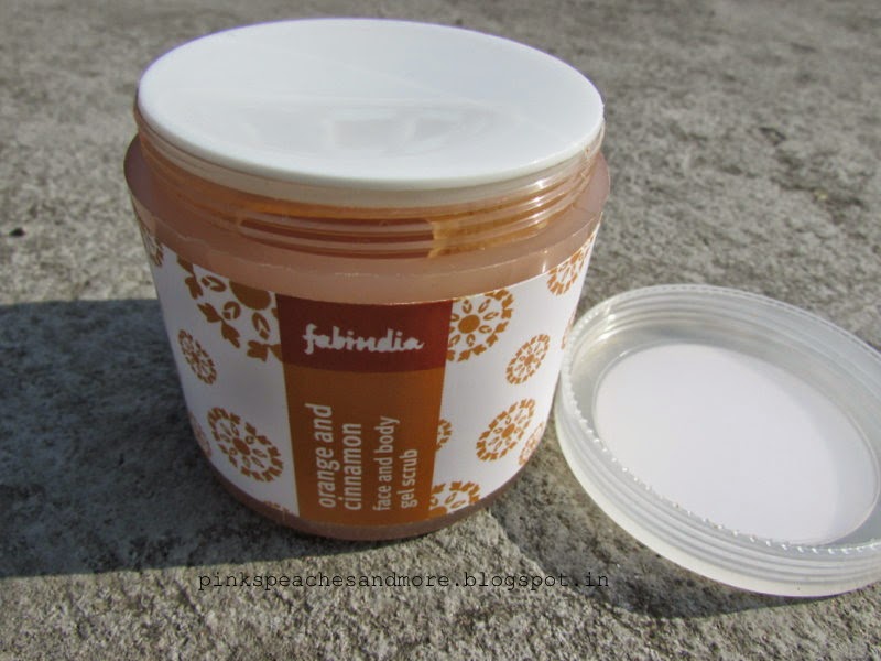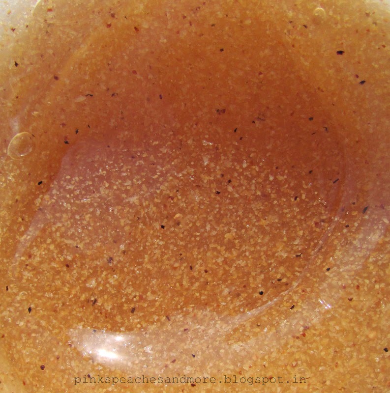Product: The product is a gel-like substance with a lot of finely milled granules which are claimed to be ground walnut shells. The consistency is just perfect- not too thick, not too runny. It has an intense orangey and cinnamon-y fragrance to it which lingers for a good time unless you tend to sweat a lot. The fragrance makes the bath very exotic and refreshing.