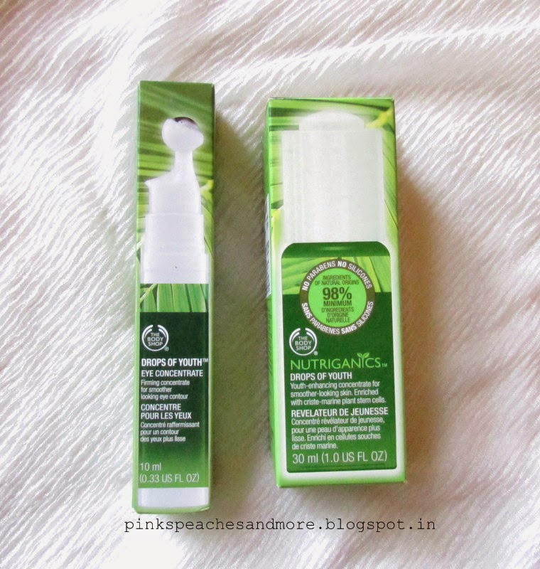 Today I’ve brought to you a review of the TBS Drops of Youth skin serum and eye-concentrate duo from their Nutriganics range. Long back, I was invited to the launch event of these two miraculous products at The Body Shop store, City Center, Kolkata. If you don’t have any idea what it was all about then read the full post here. At that event, we were presented with the products by the brand.
