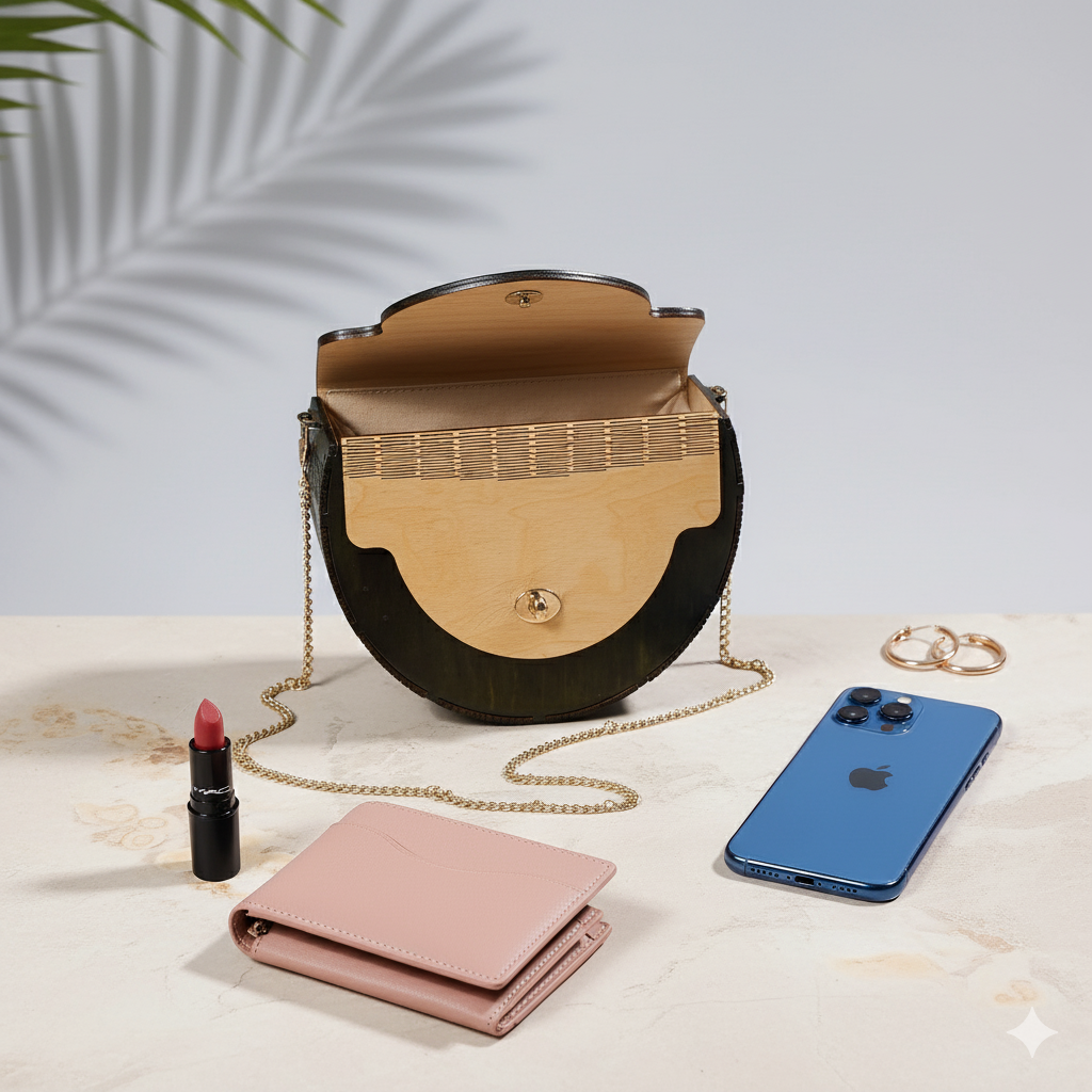 It’s just the right size for my phone, wallet, keys, and a lipstick – all the essentials without being bulky. And the strap? It’s a sturdy, comfortable fabric that complements the wood perfectly. I can already picture myself rocking this at a Sunday market or a casual coffee date. It’s not just a bag; it’s a conversation starter, a little piece of art I can carry everywhere. I’m imagining it with my block print dresses, my handloom sarees, even just a simple denim skirt and a Kutch embroidered top. The possibilities are endless!